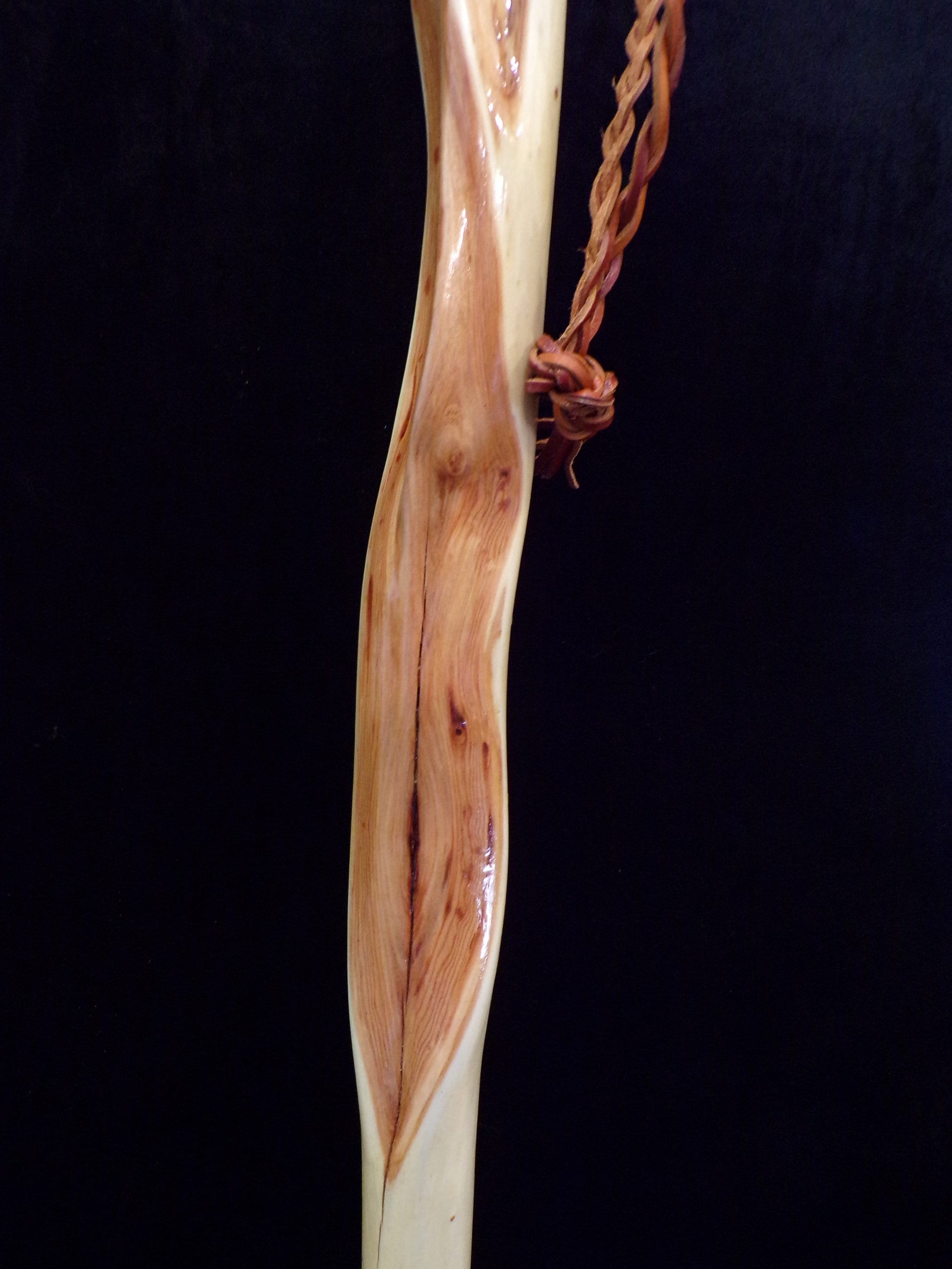 64 Inch Diamond Willow Staff: Braided Leather Cord, Hand Carved