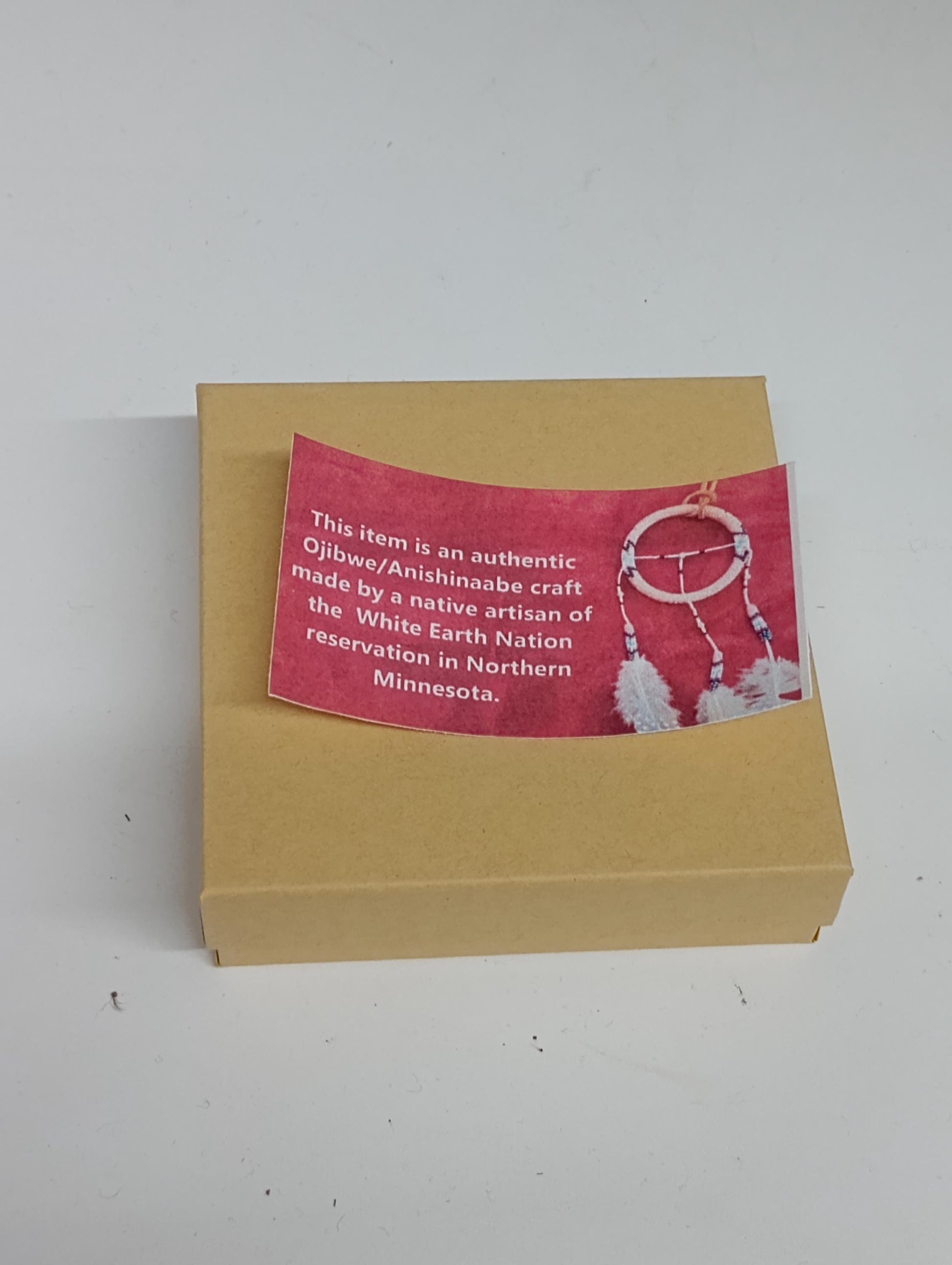 These earrings were handcrafted for Creator's Place by Angel Roy a tribal artisan of the White Earth Nation in Northern Minnesota.