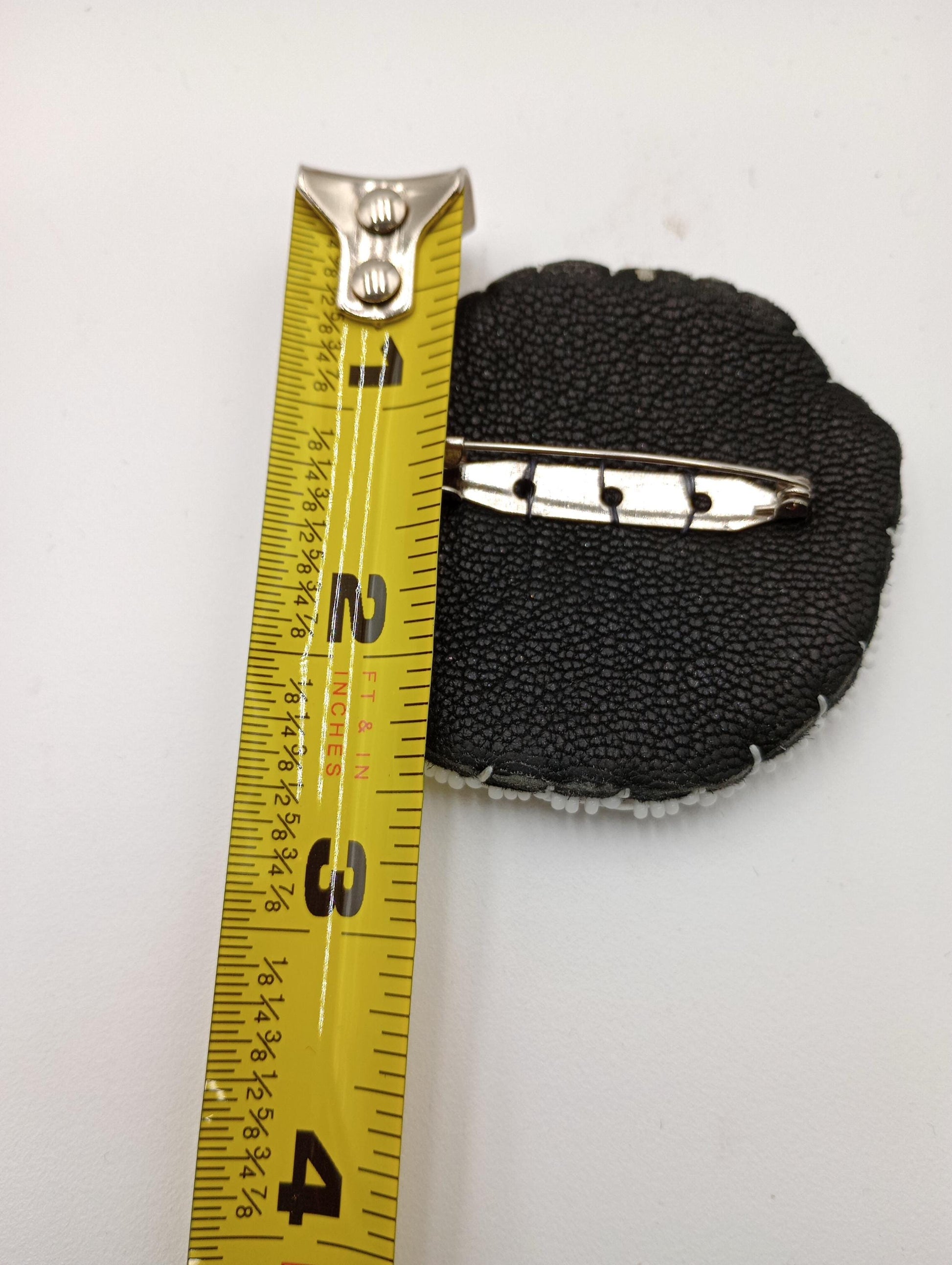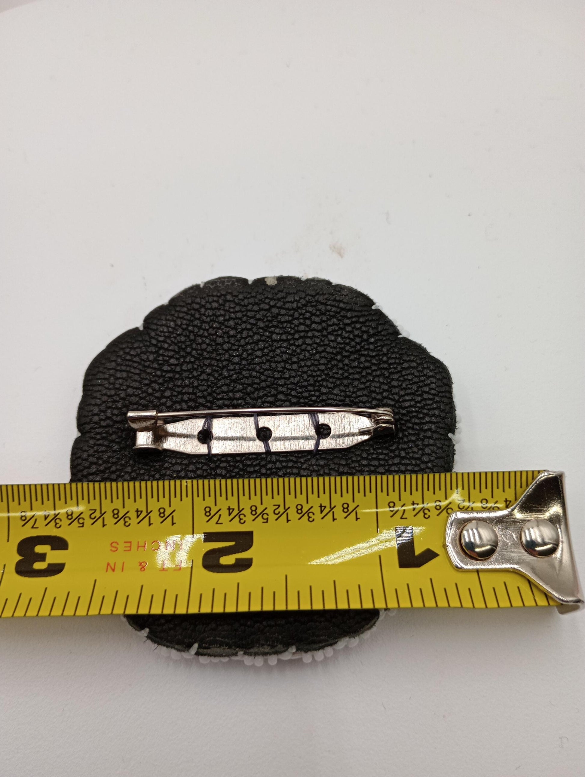 A Beaded poppy pin is a symbol of remembrance for veterans, particularly those of Indigenous heritage. Resilience and pride: For Indigenous people, creating and wearing a beaded poppy is an act of pride and a way to connect with their heritage and celebrate their veterans' enduring spirit and has a meaning for so many people. Stunning hand beaded 2 1/4 inch diameter by 2 3/8 in long with Beautiful red, black, and white edging of beads. Hand sewn using seed beads, and black leather backing. Whether these are a present for yourself or a present for a friend, they come in a gift-ready cardboard craft jewelry box with descriptive tag as shown.