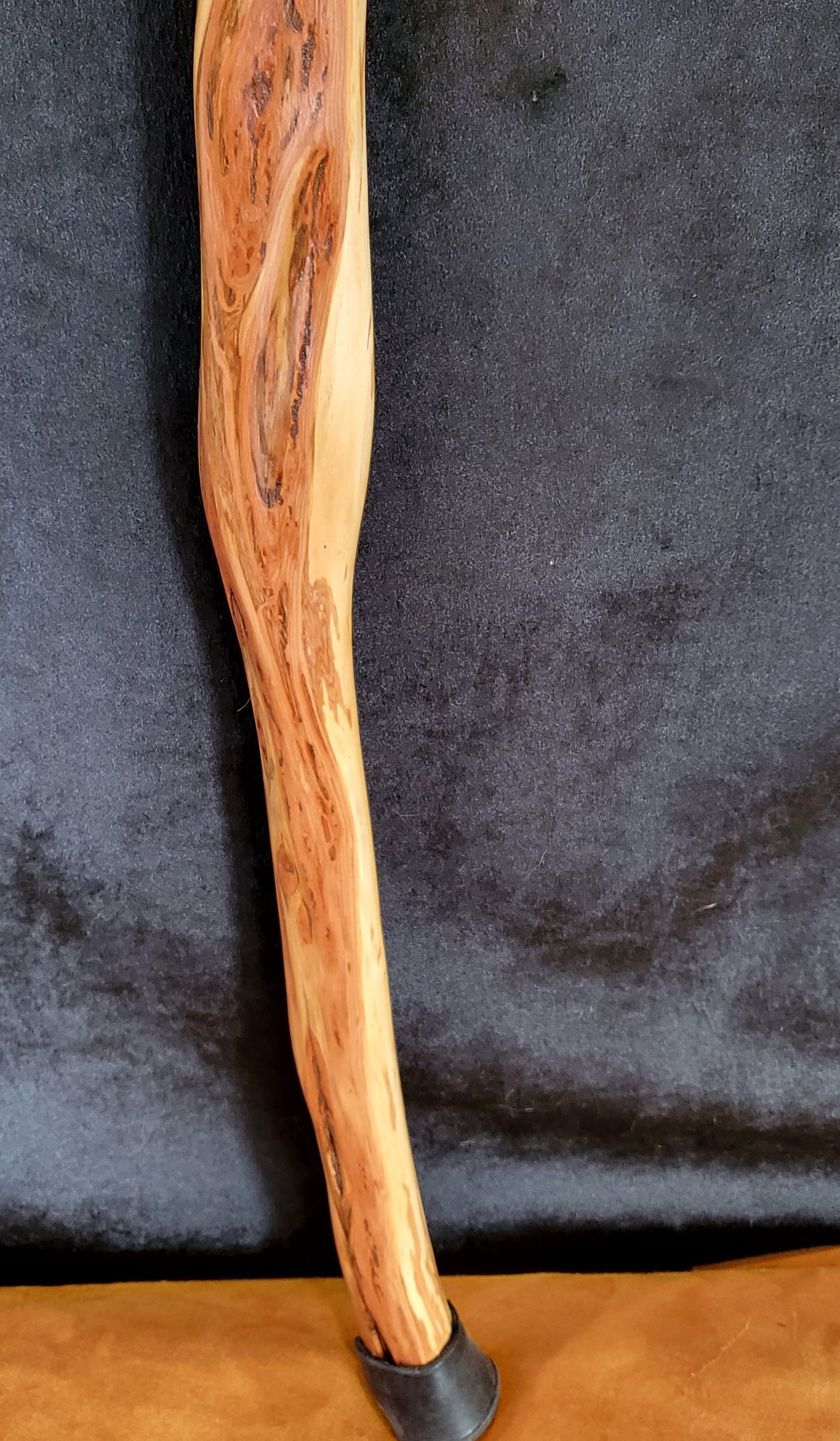 This diamond willow staff comes directly from Ojibwe country in Northern Minnesota. John Butcher, a skilled Pine Point artisan of the Minnesota Ojibwe White Earth Nation; respectfully harvested the wood, hand carved and finished this staff.