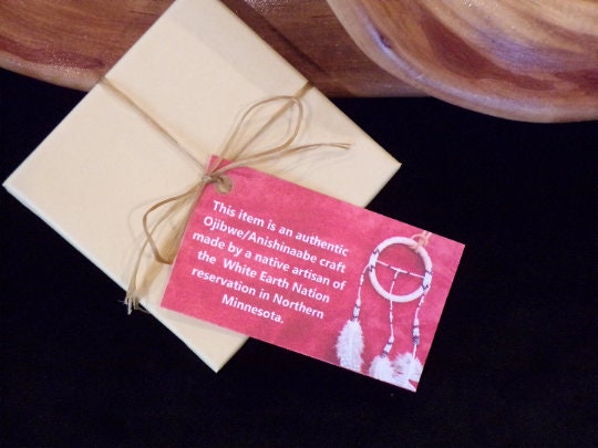 These earrings were handcrafted for Creator's Place by Adrianne Jackson, a Pine Point tribal artisan of the White Earth Nation in Northern Minnesota.